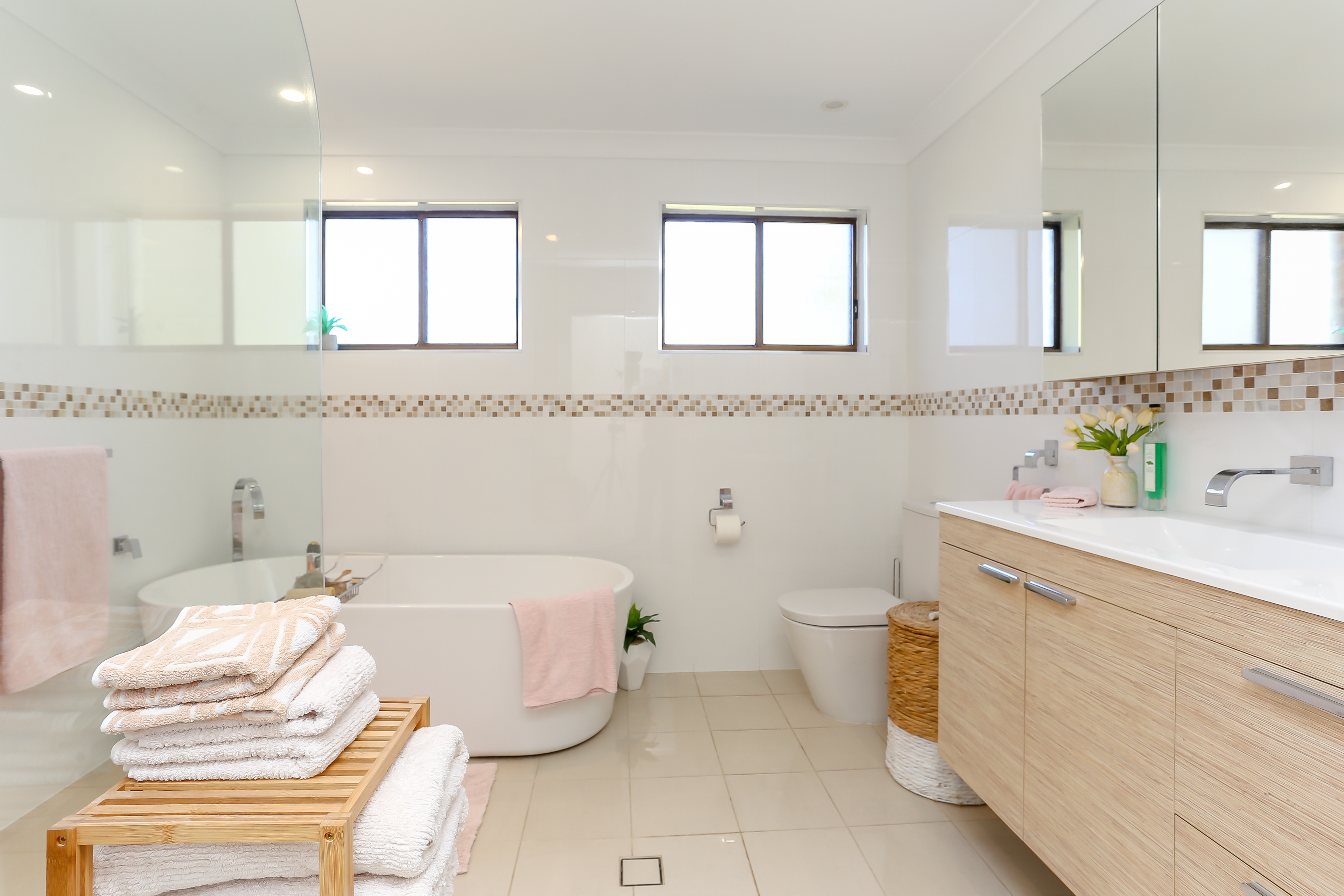 - Newly renovated bathroom with oversize shower-head free standing bath